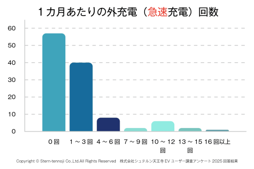 - 外充電(急速充電)行わない:49%(57件)。→ 使う人でも月1~3回程度。