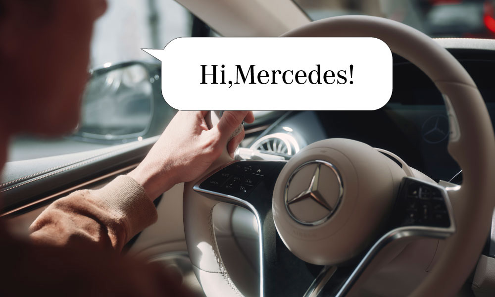 例えば「大阪城に行きたい。」と話しかけると、目的地として大阪城を認識し、そのままナビゲーションを設定してくれます。また、「ちょっと寒い。」と言うだけで、空調の温度を自動で調節します。このときMBUXは、運転席からの指示か、助手席からの指示かを判別し、それぞれの座席に応じて個別に温度調節を行います。さらに「おすすめのカフェを教えて。」と尋ねれば、現在地周辺のカフェを候補として提案し、ナビゲーションまで行います。画面を注視することや、指で画面操作をする必要がないため、操作の負担を減らし、運転に集中できる環境を作ります。